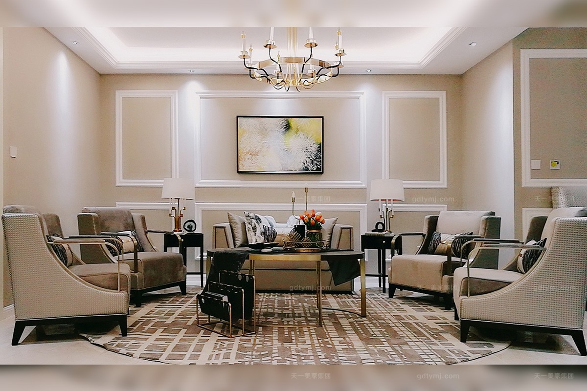 項目理念:本案以簡約美式輕奢作為風格主調,輔以古典和現代時尚元素作為陪襯,展現了簡美式輕奢風格的時尚潮流和古韻古意;正如簡美輕奢設計講究的自由隨意和實用一樣,天一美家設計師們從空間的格局與功能著手,以時尚優雅的外觀設計、精雕細琢的手工工藝、臻求完美的細節,旨在為主人打造一個飽含溫情的優雅之家;讓其新生趣味來告別沉悶,舒舒服服地生活,正因為如此,此次合作也深受客戶肯定,表示后期會繼續合作。