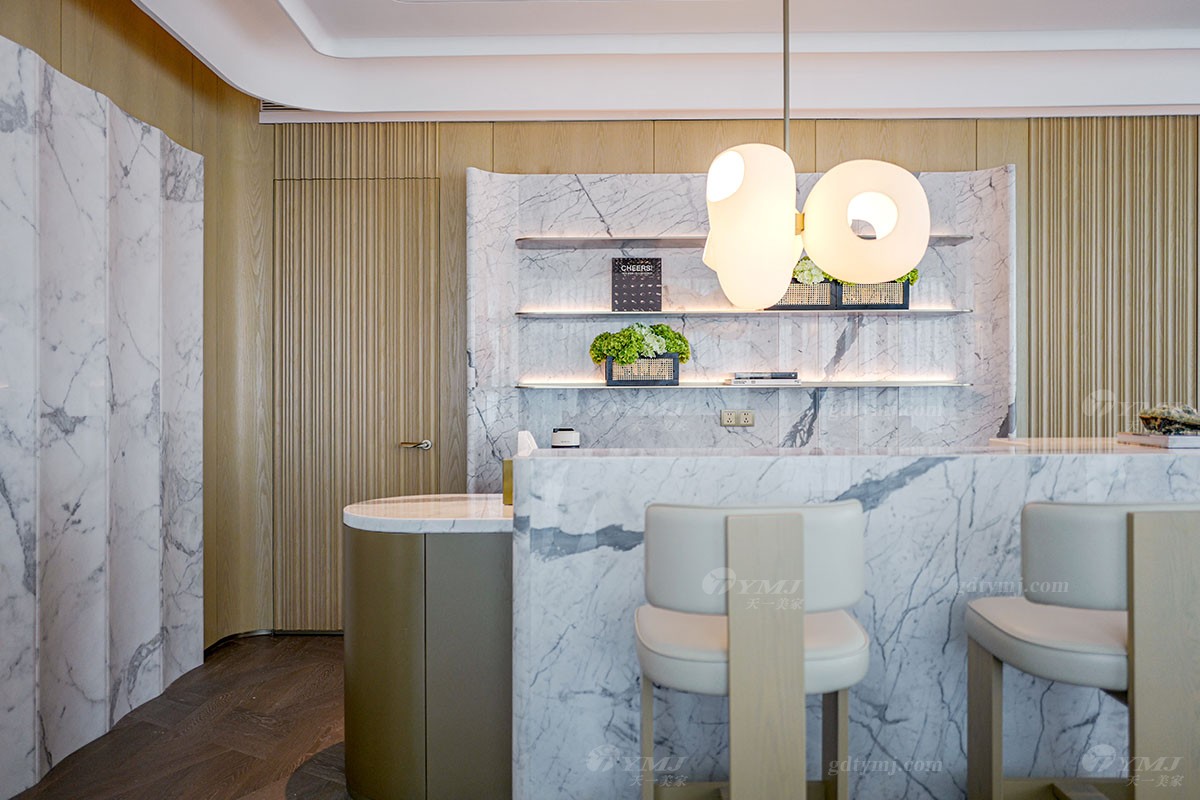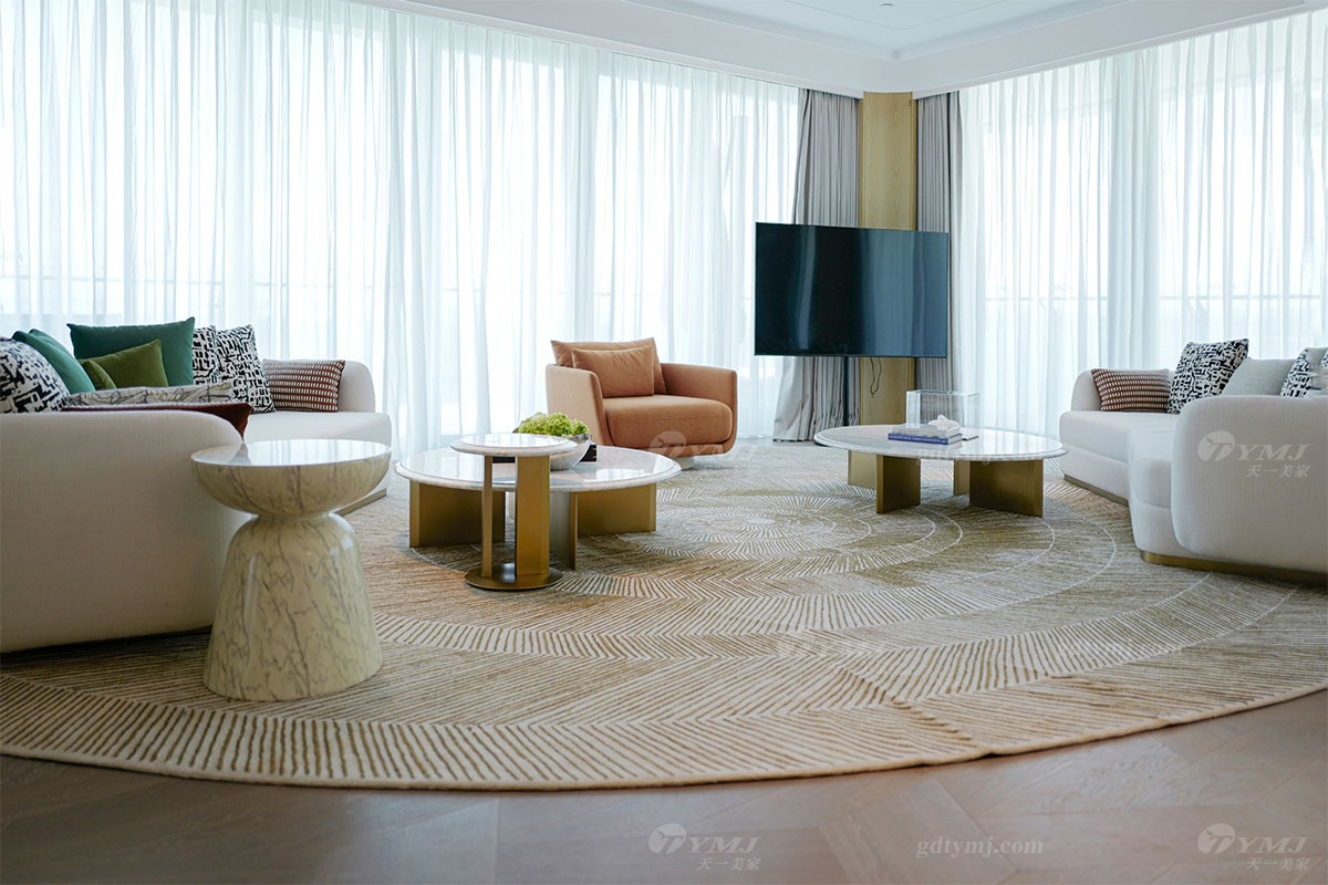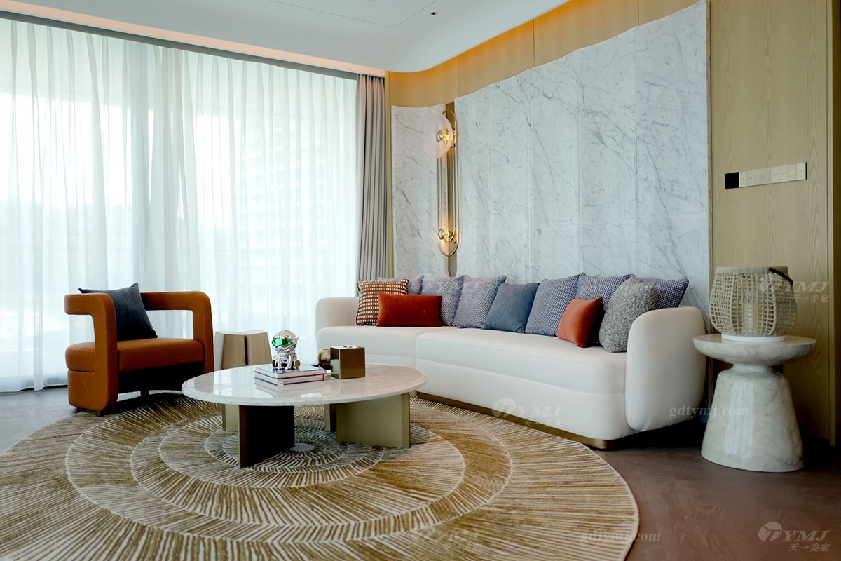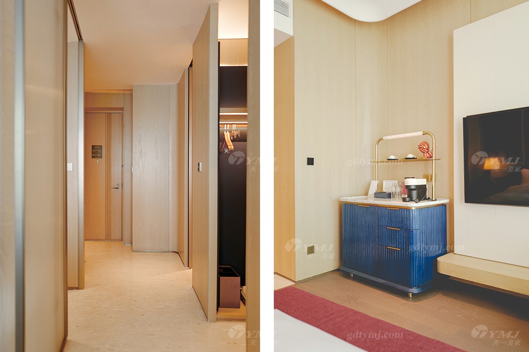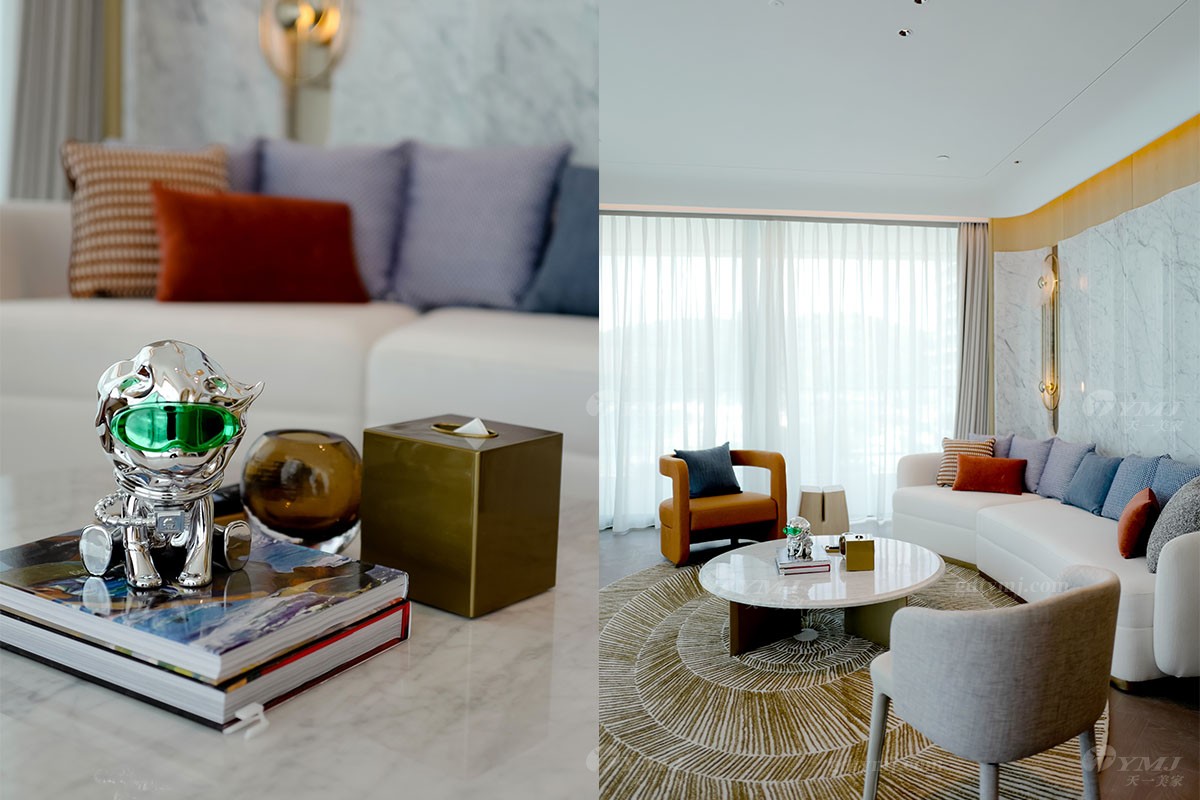 本案為現代極簡奢華設計風格,以白色,原木色為主基調,以灰、藍、紅、咖啡棕等色調為輔,作為點綴裝飾,以增加空間的層次感和活力,并融入了深圳特有的海洋文化元素;墻面裝飾大量運用原木色波浪木紋、弧形轉角造型;獨特的懸浮式吊頂及采用無主燈設計,簡約又時尚;簡潔流暢的線條設計,純粹的色彩搭配,大理石、金屬等材質的運用以及細節的工藝處理,無不彰顯極簡風格的精髓,注重功能實用性的同時,追求形態與功能的完美結合,整體在視覺感受上體現了一種清新自然,舒適雅奢的氛圍,與酒店的整體設計完美融合。