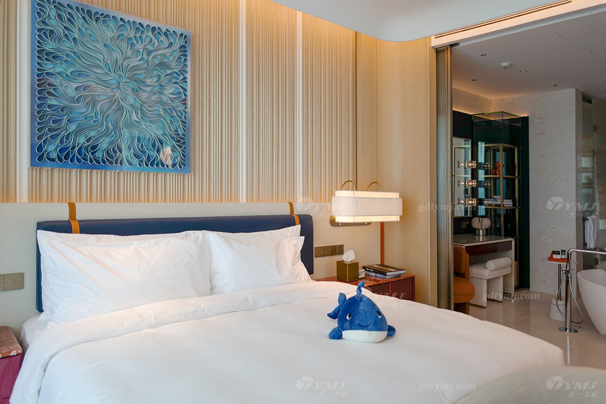 酒店固裝家具由天一美家集團傾力打造,融合了現代奢華與深圳特有的海洋文化元素,強調海濱生活品質與趣味,致力于打造一個休閑度假的未來親海生活,為賓客提供卓越的娛樂奢享住宿體驗,成為“世界級都市濱海旅游度假區”。