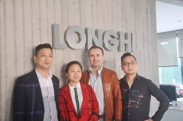 (上圖為天一美家集團總經理程工(左一)、天一匯總經理張舒玲(左二)、順德分公司總經理程剛(右一)及意大利高端家具品牌LONGHI總經理的合影。)