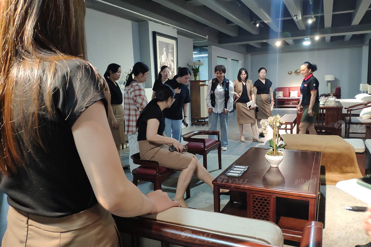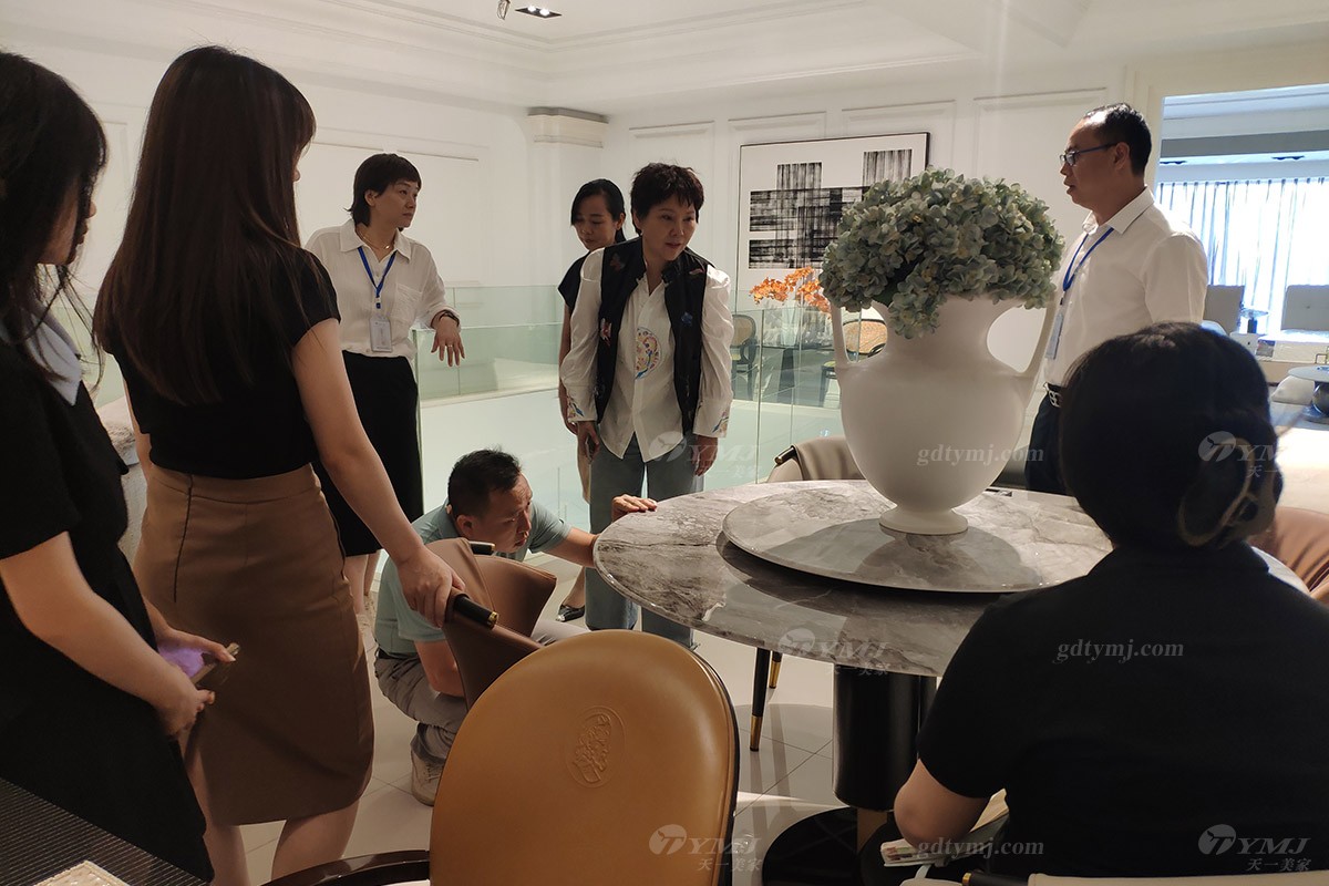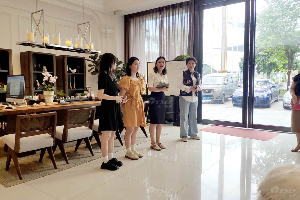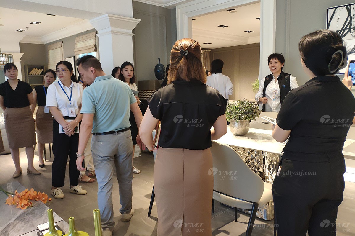 本次產品知識培訓場地位于天一美家旗艦展廳內,展廳共分三層,每層分別擺放不同風格產品,包括中古風、極簡、時尚新中式等家具風格,產品培訓主題內容是:由天一美家聯合創始人、展廳負責人劉志方女士帶領大家一起深入了解并掌握展廳內各產品風格特性并分享相關銷售技巧、產品服務理念。