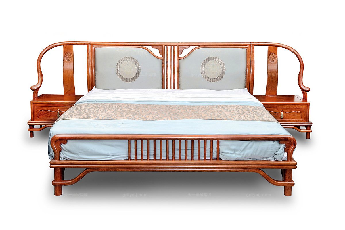 高端別墅實(shí)木家具中式雙人床