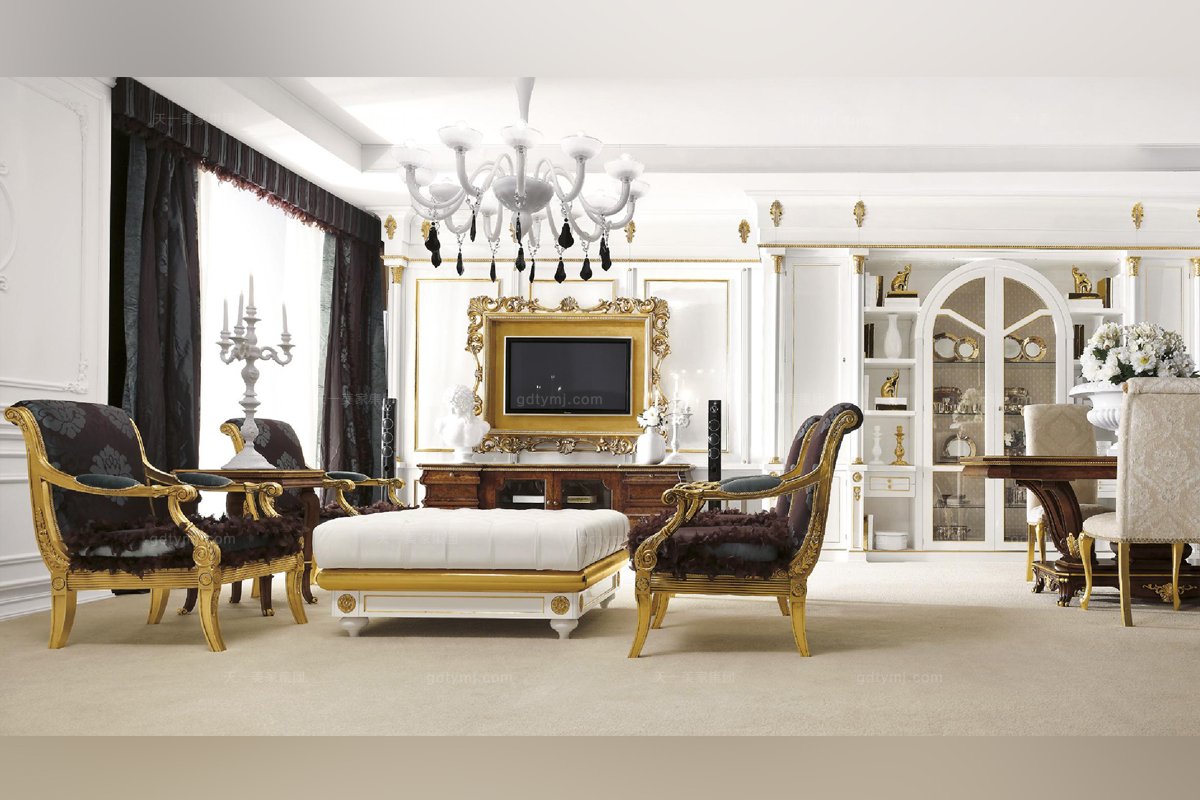 Grilli奢華新古典實木雕花金色客廳系列