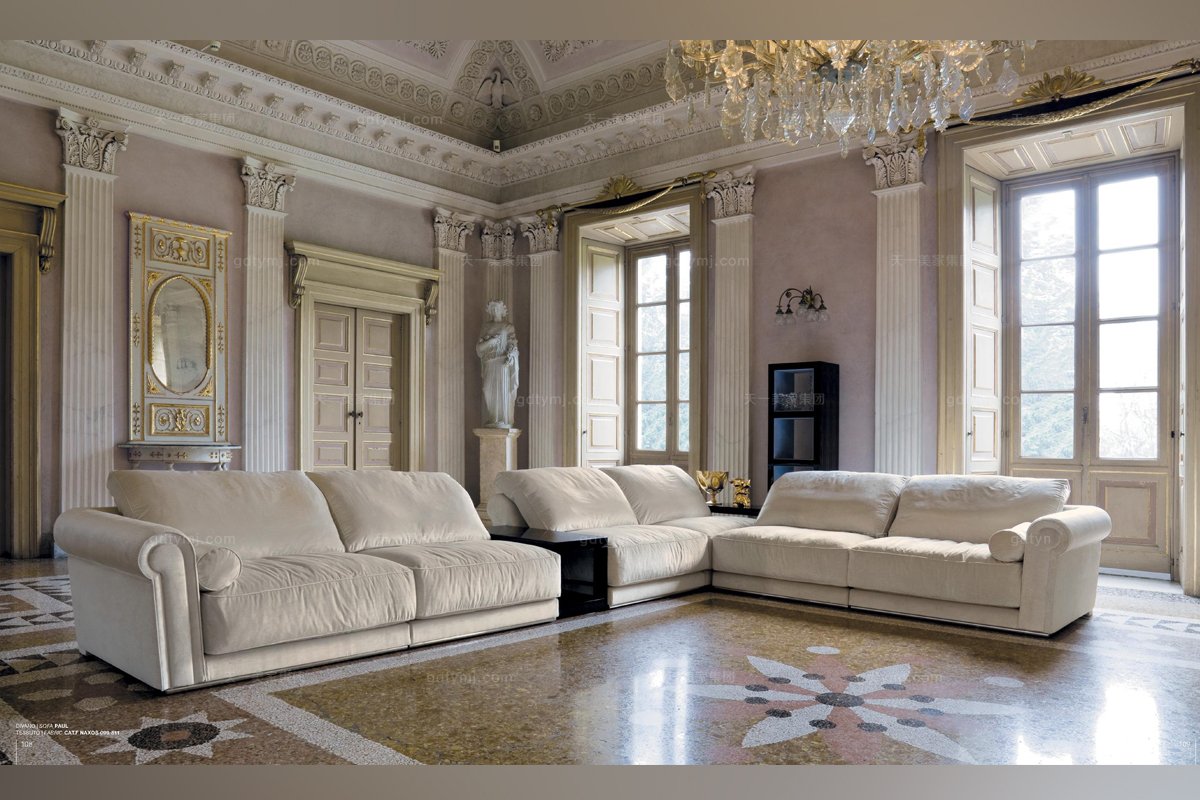Longhi現代白色布藝客廳組合沙發
