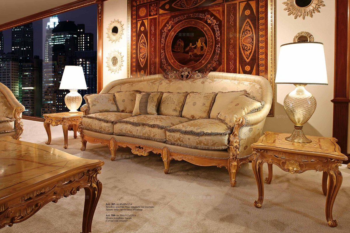 Minotti Luigi&Benigno歐式實(shí)木雕花型布藝三位沙發(fā)