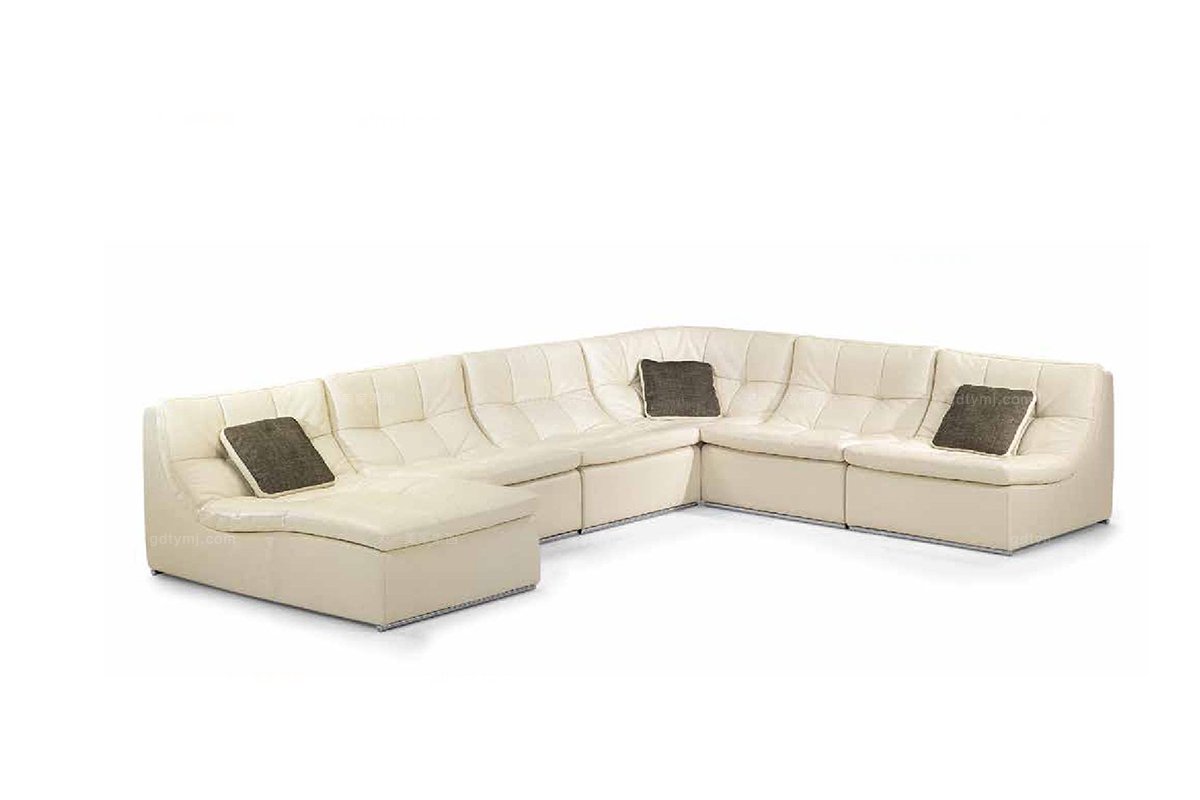 高端時尚現代意大利進口別墅會所白色真皮轉角沙發