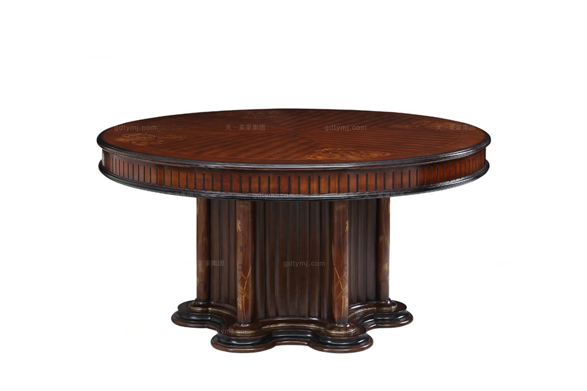 別墅豪宅家具新古典櫻桃山紋圓餐桌