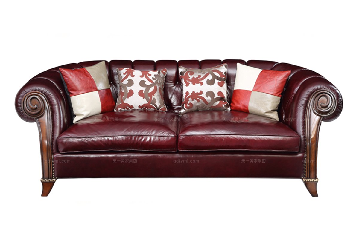 高端別墅家具品牌櫻桃色三人沙發