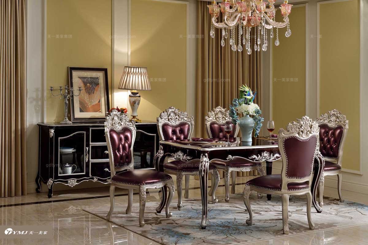 奢華典雅法式實木雕花餐椅+餐臺+餐邊柜