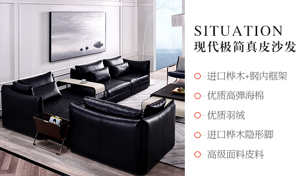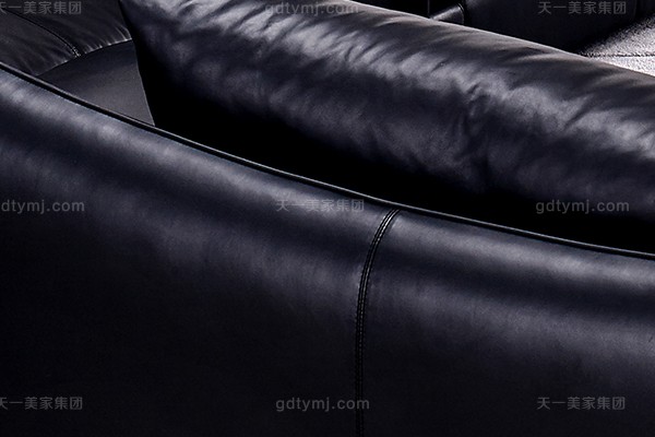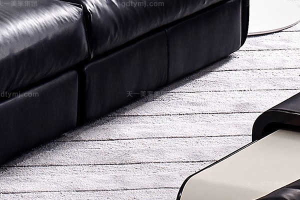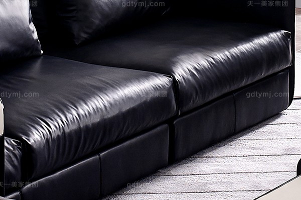 意大利極簡奢現(xiàn)代風家具客廳沙發(fā)黑色真皮轉(zhuǎn)角沙發(fā)組合