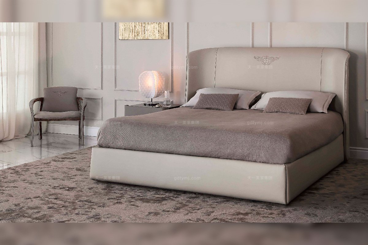 高端奢華大氣豪宅家具品牌后現(xiàn)代臥室家具米色真皮大床