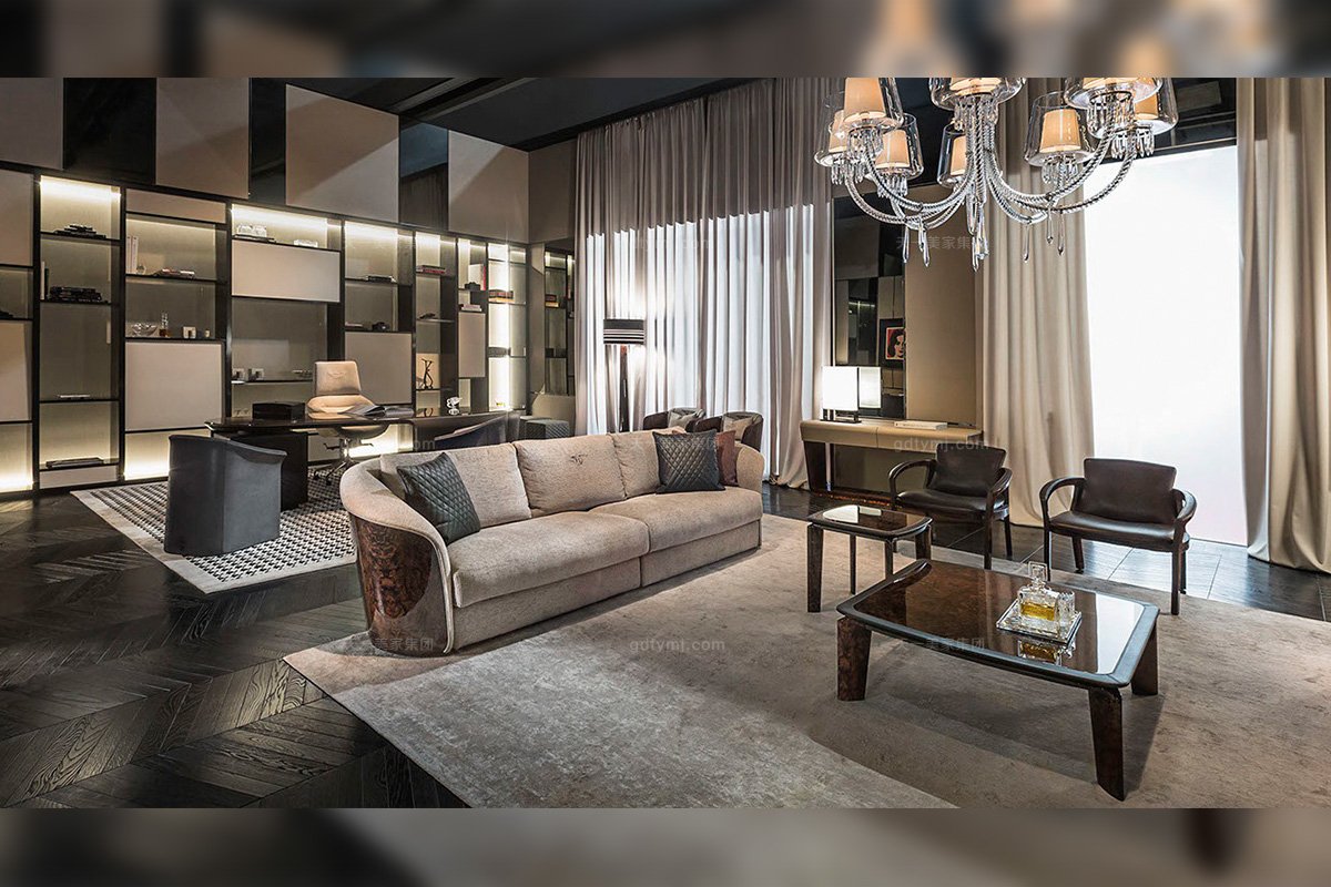 名貴意大利奢華豪宅家具品牌高彈海棉布藝軟包三人位沙發