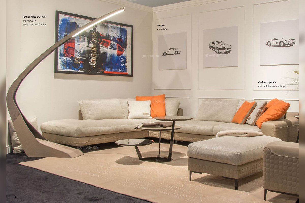 奢華豪宅別墅品牌家具客廳輕奢現代米黃色布藝軟包組合沙發