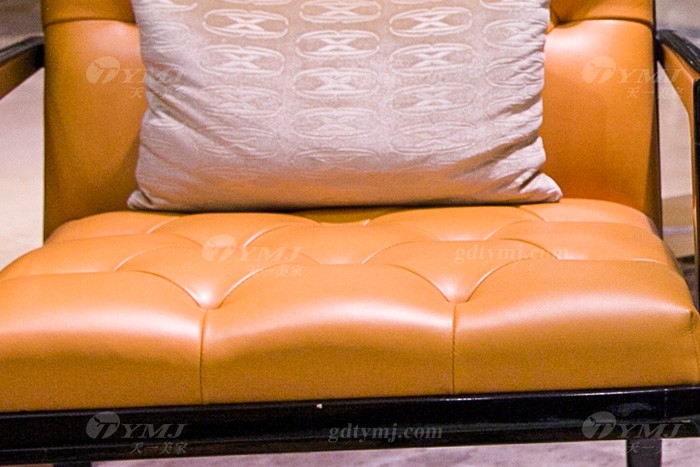 高端奢華會(huì)所家具輕奢后現(xiàn)代風(fēng)愛(ài)馬仕橙色真皮休閑椅