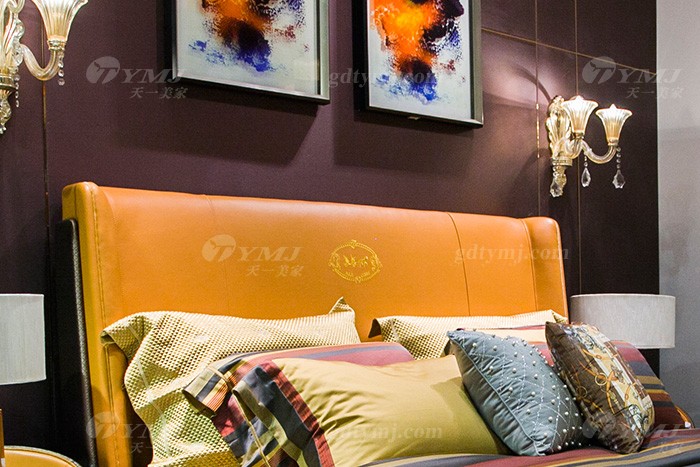 高端別墅豪華家具輕奢后現(xiàn)代品牌臥室愛馬仕橙真皮大床
