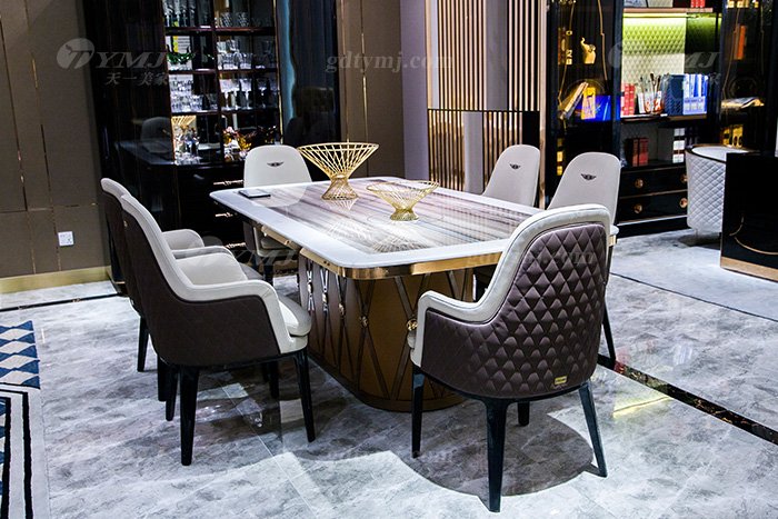 高端大氣別墅家具品牌樣板間家具客廳優質大理石面餐桌椅組合