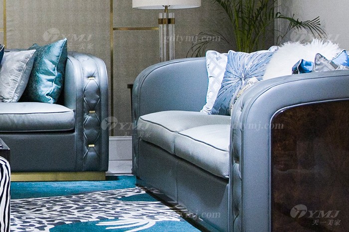 高端私家別墅家具品牌輕奢現代客廳家具時尚藍色真皮沙發組合