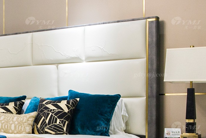 奢華別墅會所家具品牌輕奢現(xiàn)代臥室家具真皮雕花大床組合