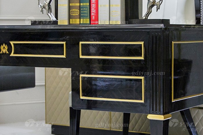 高端奢華別墅會所家具品牌輕奢現(xiàn)代黑檀色實木書桌