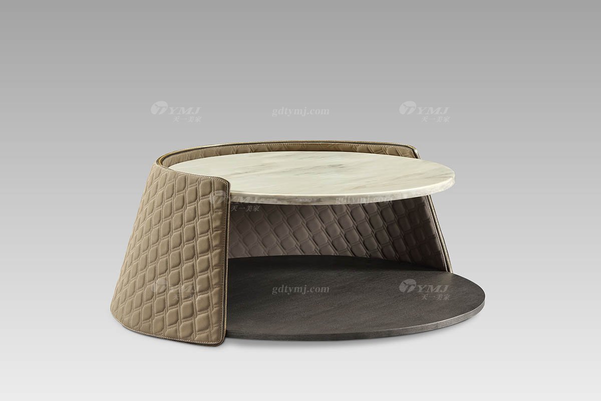 現(xiàn)代輕奢高端豪宅家具高級(jí)大理石+咖色超纖皮大圓幾