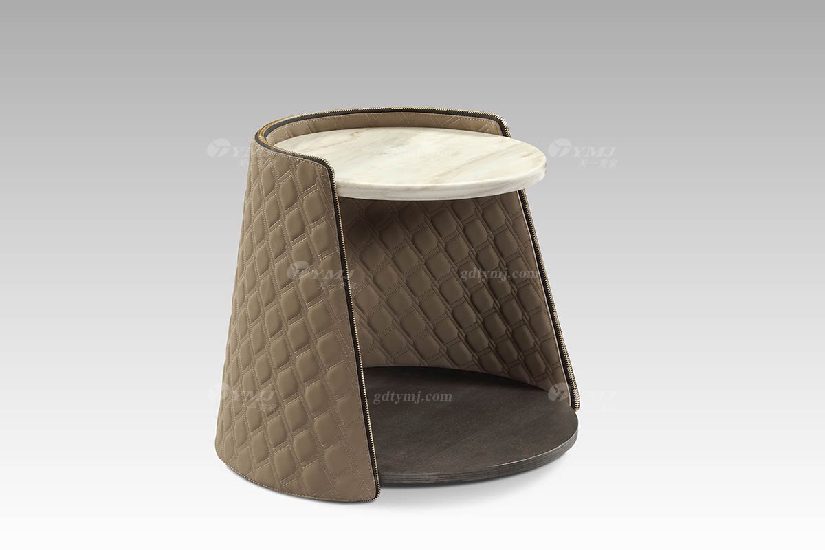現代輕奢別墅豪宅家具高級大理石+咖色超纖皮小圓幾