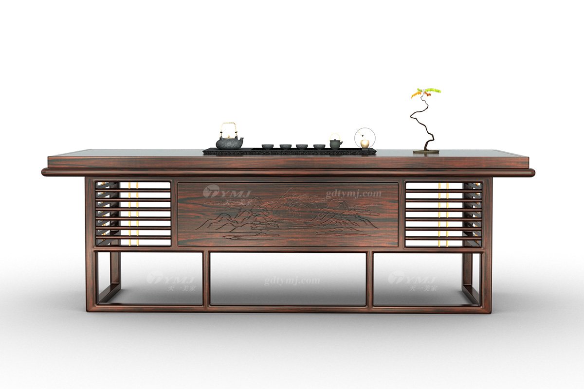 高端會所別墅家用家具新中式輕奢全紅木黑酸枝實木茶臺