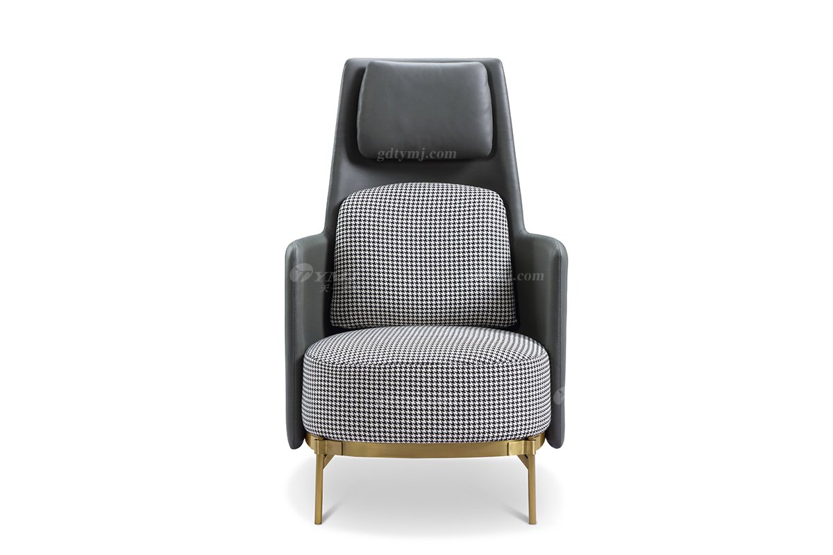 現(xiàn)代輕奢高端別墅家具意式極簡風(fēng)格客廳時尚千鳥格布藝+金屬休閑椅