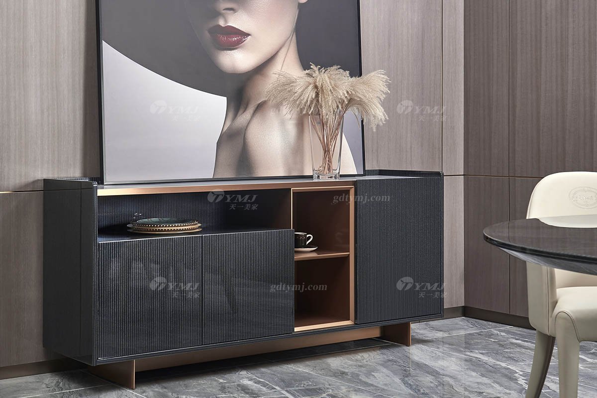 后現(xiàn)代輕奢風(fēng)格家具高端會(huì)所別墅品牌家具時(shí)尚餐廳大理石面+黑檀餐柜