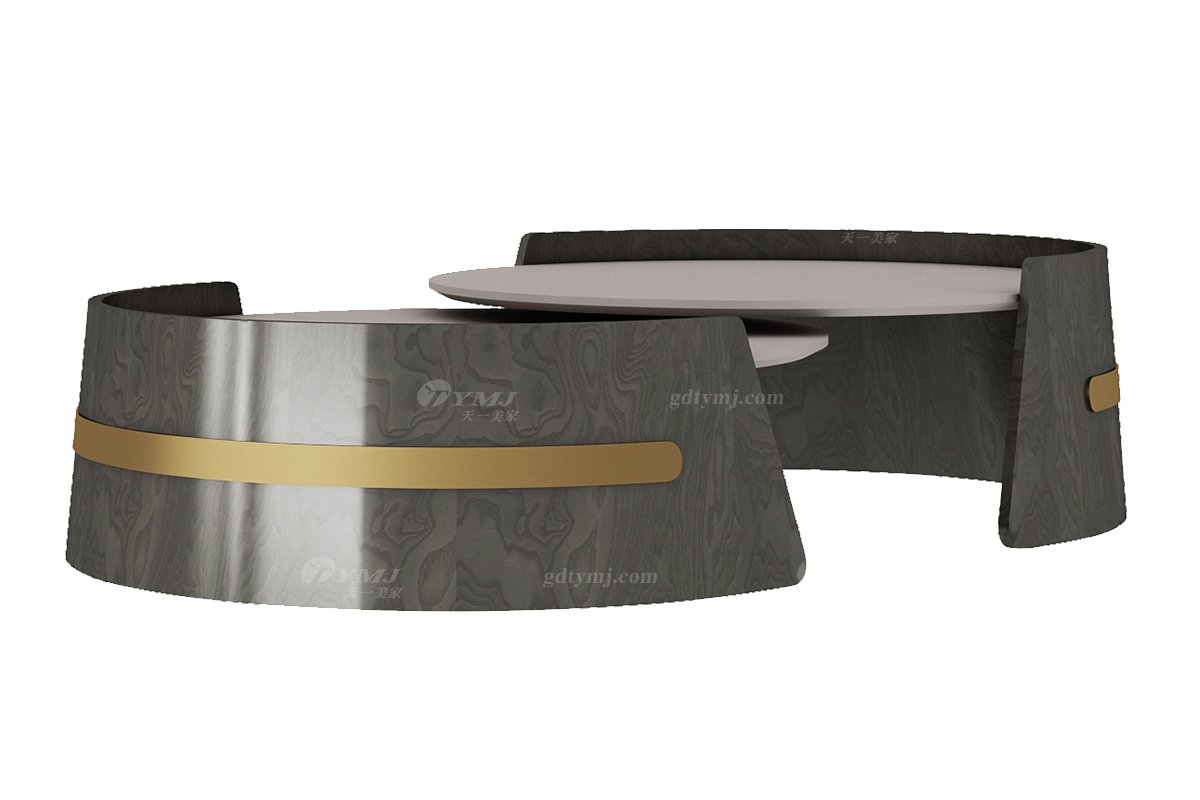 輕奢后現代風格家具高端會所別墅品牌家具時尚客廳魚肚白灰石面+樹瘤飾面茶幾套幾組合