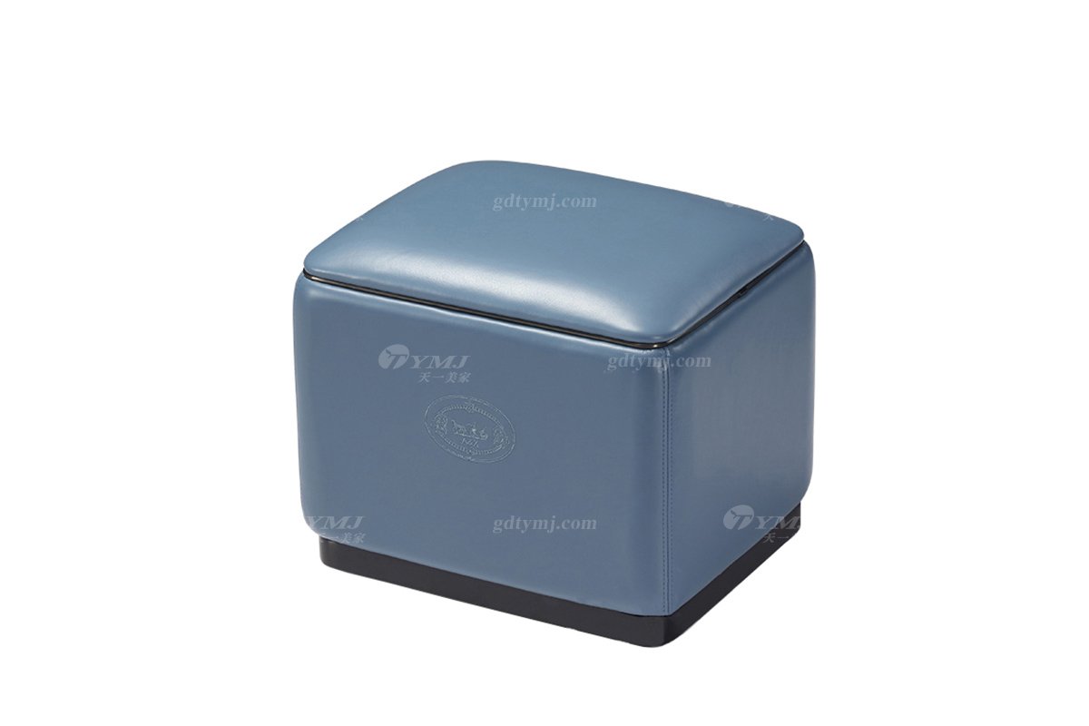 輕奢后現(xiàn)代風(fēng)格家具高端會所別墅品牌家具時尚客廳藍色真皮坐墩方凳