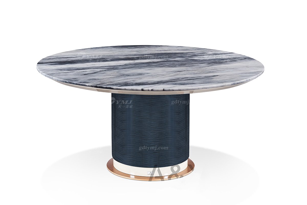 輕奢后現代風格家具高檔會所別墅家具品牌時尚玫瑰金拉絲+大理石餐桌