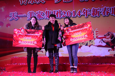 聯歡晚會現場充滿了激情、熱烈、活躍的氣氛。首先,由集團總裁、董事長程一先生致辭,程董說:“2013年天一美家取得了不錯的成績與榮譽,這些都是每一位天一家人們付出辛勤的汗水而得來的,這里由衷的感謝我們每一位天一美家人,感謝他們的努力工作。我們有理由有信心相信在2014年我們天一美家會再創輝煌業績!”