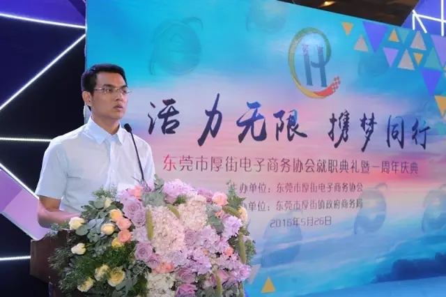 東莞市厚街電子商務協會會長方建明發表講話,在過去的一年,厚街電子商務協會取得長足發展,未來我們攜手共進創輝煌!爭取打造一批省、市電子商務示范企業,推動電商企業聚集園區發展,同時,借助我鎮特色制造業發展優勢,主動對接“互聯網+”,全力打造“厚街電商”品牌。
