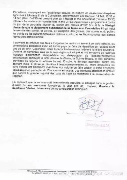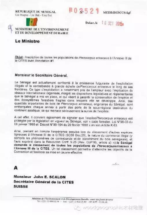 塞內(nèi)加爾關(guān)于刺猬紫檀保護的提案文件(圖片來源于網(wǎng)絡)