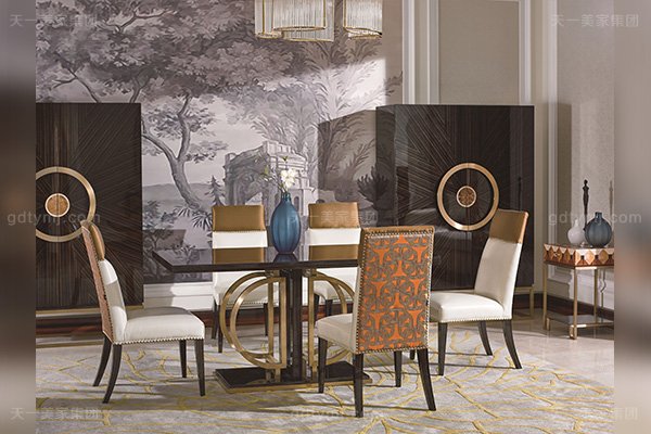 天一美家集團旗下另一輕奢家具品牌ty-TLD系列,是為了滿足現代高端品味人士對家居生活的需求,以精美的手工雕花,流暢的線條,金銀鉑的點綴,古典與現代并重,以都市、時尚、簡約、優雅地現代生活方式為設計理念,充分展現了尊貴低調奢華的整體氛圍,在黑色和金銀鉑的點綴中給您一個時尚與尊貴、精致與品位的家。